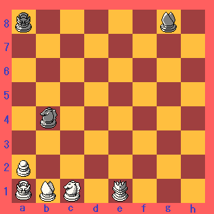 「まず赤のルークがまゆらを取って、白のルークで赤のルークを取ると次の手で赤のビショップが白のルークを取ってくる。そして最後に白のビショップで赤のビショップを取るっと。これでゲットだ!」